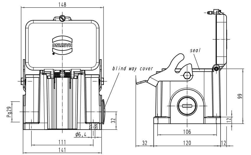 CUSTODIA FISSA+COP. 1 LEVA 48P PANNELLO 2 USCITE PG29