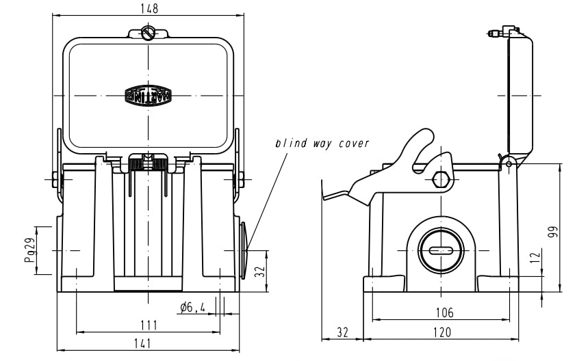 CUSTODIA FISSA+COPERCHIO 1 LEVA 48P PANNELLO 2 USCITE PG29