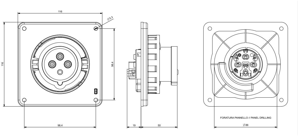 SCAME PARRE SPA - SCASCM420B7W SPINA DA INCASSO 20A 3P 4W 7H IP67