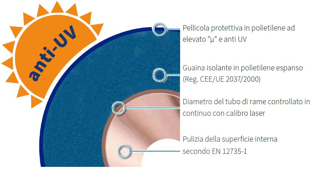SMISOL Clim Aeterna™ è il tubo in rame isolato per il condizionamento, conforme EN 12735-1, con guaina in polietilene espanso priva di CFC e HCFC. Garantisce elevate prestazioni termiche, sicurezza al fuoco, resistenza ai raggi UV e sostenibilità certificata EPD.