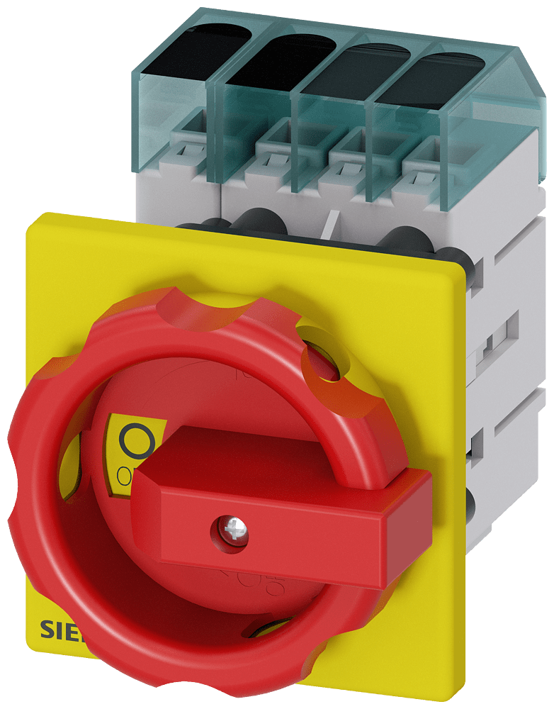 sezionatore sottocarico 3LD3, Iu 32 A interruttore principale a 3 poli + N potenza di impiego nominale per AC-23 A con 400 V 11,5 kW fissaggio frontale interruttore base con fissaggio su foro centrale 22,5 mm comando rotativo rosso/giallo 66 x 66 mm Interruttori principali e di OFF di emergenza SENTRON 3LD3 per la disinserzione sicura dei carichi in numerosi settori, ad es. per motori trifase, impianti di climatizzazione e ventilazione, quadri di comando e elettrici, in particolare per piccole macchine quali segatrici, compressori, pompe, betoniere, trapani, fresatrici o macchine per la lavorazione del legno. Struttura modulare, montaggio semplice e rapido di blocchetti di contatti ausiliari, morsetto PE/N o 4º polo. Ottimale sezionamento dalla rete da 16 A a 63 A grazie alla lucchettabilità del comando rotativo. Versatilità dimpiego grazie alle approvazioni internazionali. Una grandezza costruttiva meccanica per cinque grandezze costruttive elettriche. Gli interruttori principali e gli interruttori di OFF di emergenza 3LD sono disponibili in molteplici varianti per il fissaggio frontale, su piastra di montaggio, su guida DIN o montaggio in quadro di distribuzione, a scelta con comando rotativo bloccoporta diretto o rinviato. I 3LD2 sono disponibili anche con varianti per applicazioni in corrente continua. Interruttori principali e di OFF di emergenza 3LD - Sicurezza integrale per utenti e sistemi.