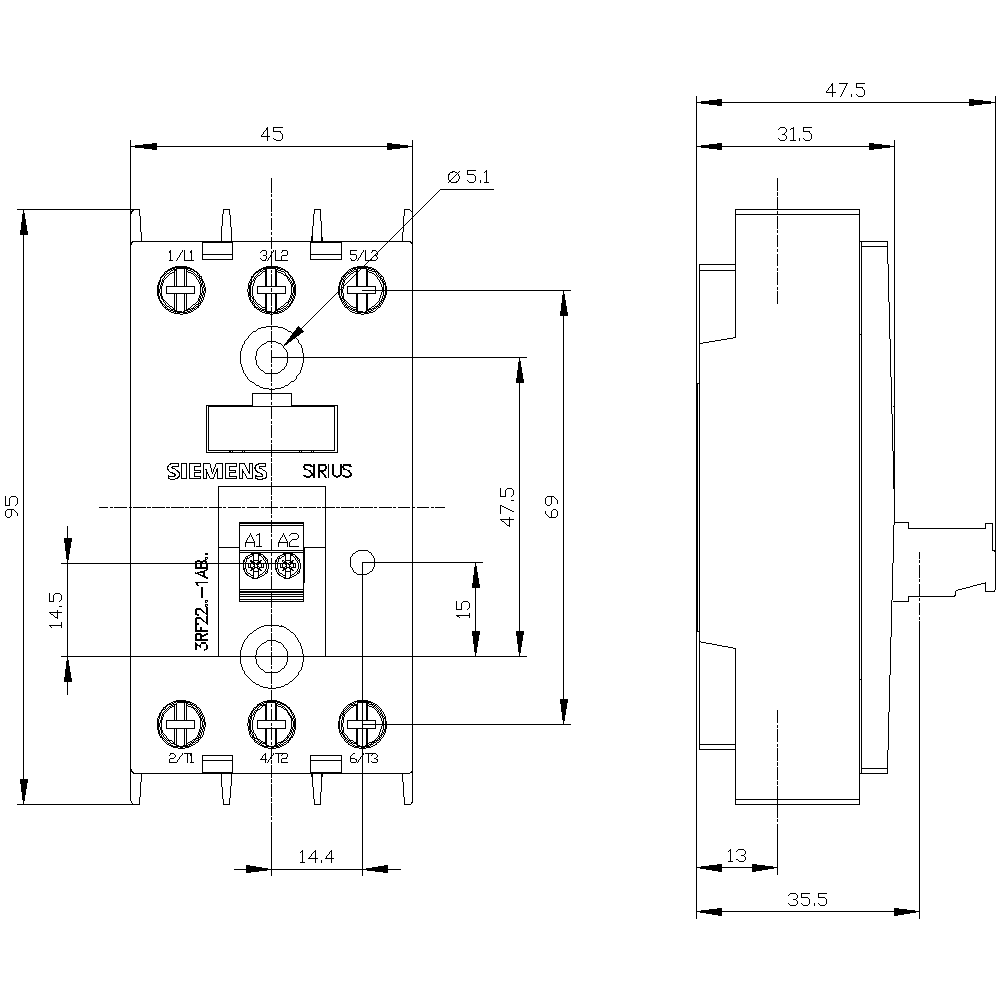 SIEMENS - SIE3RF22551AB45 RELE STATCONTR.2 FASI 55A 48-600V 4-30V