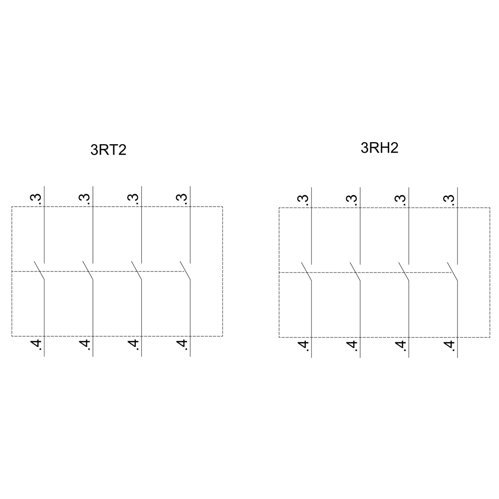 blocchetto di contatti ausiliari, sul lato frontale, 4 NO, .3/.4, .3/.4, .3/.4, .3/.4, via di corrente: 1 NO, 1 NO, 1 NO, 1 NO, morsetti a molla, per contattori 3RT2 e contattori ausiliari 3RH2 contatto ausiliario SIRIUS 3RH29 per lampliamento dei contatti ausiliari nel circuito di comando. I blocchetti di contatti ausiliari frontali 3RH29 possono essere montati senza attrezzi indipendentemente dalla grandezza costruttiva sui contattori 3RT2 e sui contattori ausiliari 3RH2. I blocchetti di contatti ausiliari 3RH19/3RH29 sono fornibili come varianti per il montaggio frontale o laterale, con fino a quattro contatti NO con commutazione istantanea o fino a due contatti NO e NC anticipati. I blocchetti di contatti ausiliari possono essere in esecuzione con elementi di contatto a guida forzata in contattori ausiliari 3RH o anche come contatti speculari in contattori di potenza 3RT. Essi sono sempre fornibili con morsetti a vite e morsetti a molla. Semplice, efficiente, sempre attuale - il sistema modulare SIRIUS.