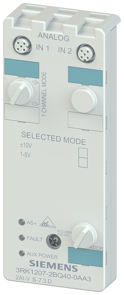 SIEMENS - SIE3RK12072BQ400AA3 Modulo compatto AS-i, IP67, analogico, 2AI, formato numerico S7, 2 x ingressi (M12), +/-10 V