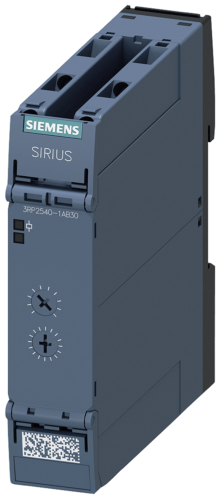 SIEMENS - SIE3RP25401AB30 Relè a tempo, ritardato alla diseccitazione, AC/DC 24 V, 1CO, 7 campi di temporizzazione 0,05 ... 600 s,