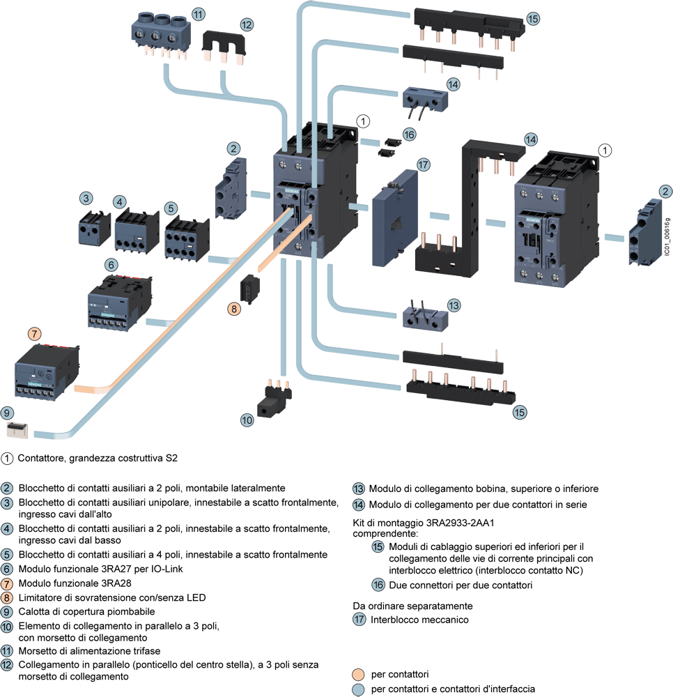contattore di potenza, AC-3e/AC-3, 51 A, 22 kW / 400 V, a 3 poli, DC 24 V, 0,8 ... 1,2* Us, con varistore integrato, contatti ausiliari: 2 NO + 2 NC, morsetti a vite, grandezza costruttiva: S2, adatto per uscite PLC, blocchetto di contatti ausiliari non rimovibile Contattore dinterfaccia SIRIUS 3RT2 per il comando di motori e di circuiti ausiliari e di comando, specialmente per il collegamento diretto ad apparecchiature di comando elettroniche. I contattori 3RT2 sono parte integrante del sistema componibile SIRIUS con i suoi prodotti perfettamente accordati tra di loro. Essi convincono per la grande potenza in una forma costruttiva compatta e lelevata affidabilità di contatto. Sono combinabili in diversi modi con altri componenti nella partenza. Molte delle combinazioni di apparecchi sono già testate in fabbrica. I blocchetti di contatti ausiliari integrati riducono la complessità del montaggio. Le connessioni frontali semplificano il cablaggio semplice. I contattori 3RT2 sono tropicalizzati, omologati in tutto il mondo (ad es. IEC e UL/CSA) e IE3/IE4ready. Gli apparecchi sono disponibili oltre che con morsetti a vite anche con morsetti a molla per un collegamento rapido, esente da manutenzione e resistente alle vibrazioni. Semplice, efficiente, sempre attuale - il sistema modulare SIRIUS.