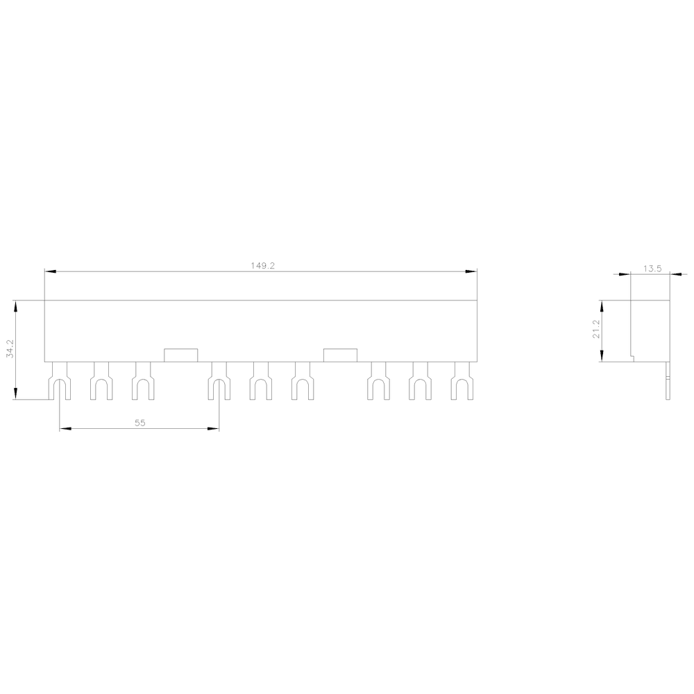 Sbarre collettrici trifase Interdistanza modulare 55 mm per 3 interruttori+accessori Collegamenti a forcella Semplice, efficiente, sempre attuale - il sistema modulare SIRIUS.