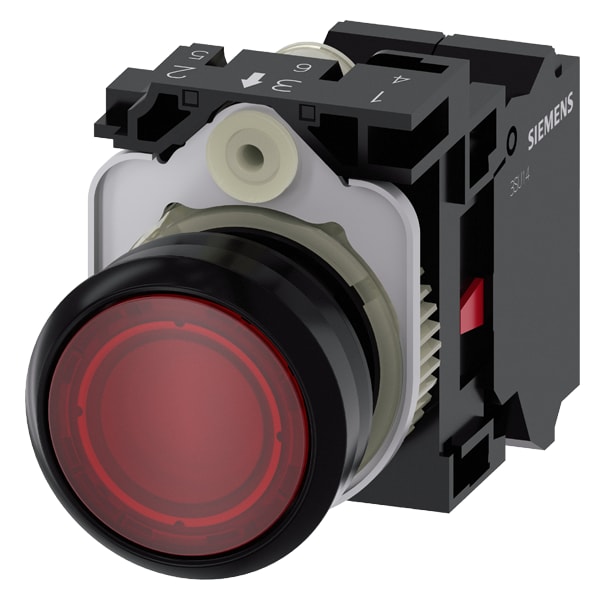 SIEMENS - SIE3SU11060AB203CA0 PULS.LUM.PIATTO ROSSO MOLLA 230V AC 1NC