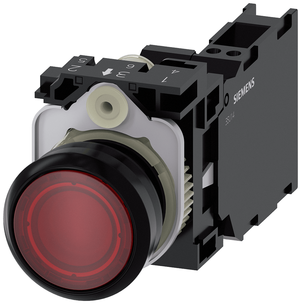 SIEMENS - SIE3SU11060AB203FA0 PULS.LUM.PLAST.ROSS.MOMEN.1NO+1NC LED230