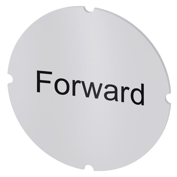 inserto piatto per pulsante luminoso, rotondo, opalescente con scritta nera. con iscrizione: Forward Inserto piatto per la siglatura dei dispositivi di comando e segnalazione SIRIUS ACT. Siemens offre, sotto il nome commerciale SIRIUS ACT, un portfolio esclusivo di dispositivi di comando e segnalazione con omologazioni di prodotto per il mercato mondiale in tre moderne serie di design in robusto metallo puro e plastica pregiata.Linnovativo concetto di innesto a scatto semplifica talmente il montaggio cheper eseguirlo basta una sola mano e non servono attrezzi speciali. Per i fori di montaggio sono sufficienti semplici fori non scanalati, essendo già integrata una protezione antirotazione al 100 %.Grazie al grado di protezione elevato i robusti apparecchi sono adatti allimpiego industriale e in ambiente esterno. È persino possibile la pulizia con getto ad alta pressione. Né polvere, né oli, né liscivia possono comprometterne il funzionamento affidabile.Oltre che con il cablaggio standard, gli apparecchi possono essere collegati al controllore anche tramite PROFINET, AS-Interface oppure IO-Link. Potete così ridurre il vostro onere di cablaggio, minimizzare le fonti di errore e ottenere maggiore flessibilità.Il configuratore online grafico supporta in modoconfortevole la scelta e lordinazione di singoli apparecchi, pulsantiere e iscrizioni. È disponibile una documentazione completa (ad es. manuale, dati 3D, schema di collegamento). Ampia gamma di accessori opzionali (ad es. targhette identificative, per protezione e accesso, operatori, accessori per pulsantiere). SIRIUS ACT - Performance in Action nel comando e nella segnalazione. Semplici da montare, altamente performanti, semplicemente perfetti.