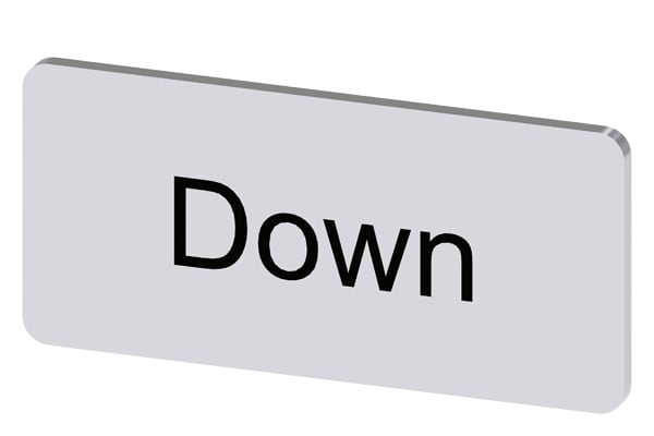 targhetta identificativa per fissaggio a scatto o incollaggio sul portatarghetta, grandezza della targhetta 12,5x27 mm, targhetta argento, iscrizione nera, con iscrizione: Down Targhetta identificativa per la siglatura dei dispositivi di comando e segnalazione SIRIUS ACT. Siemens offre, sotto il nome commerciale SIRIUS ACT, un portfolio esclusivo di dispositivi di comando e segnalazione con omologazioni di prodotto per il mercato mondiale in tre moderne serie di design in robusto metallo puro e plastica pregiata.Linnovativo concetto di innesto a scatto semplifica talmente il montaggio che per eseguirlo basta una sola mano e non servono attrezzi speciali. Per i fori di montaggio sono sufficienti semplici fori non scanalati, essendo già integrata una protezione antirotazione al 100 %.Grazie al grado di protezione elevato i robusti apparecchi sono adatti allimpiego industriale e in ambiente esterno. È persino possibile la pulizia con getto ad alta pressione. Né polvere, né oli, né liscivia possono comprometterne il funzionamento affidabile.Oltre che con il cablaggio standard, gli apparecchi possono essere collegati al controllore anche tramite PROFINET, AS-Interface oppure IO-Link. Potete così ridurre il vostro onere di cablaggio, minimizzare le fonti di errore e ottenere maggiore flessibilità.Il configuratore online grafico supporta in modo confortevole la scelta e lordinazione di singoli apparecchi, pulsantiere e iscrizioni. È disponibile una documentazione completa (ad es. manuale, dati 3D, schema di collegamento). Ampia gamma di accessori opzionali (ad es. targhette identificative, per protezione e accesso, operatori, accessori per pulsantiere). SIRIUS ACT - Performance in Action nel comando e nella segnalazione. Semplici da montare, altamente performanti, semplicemente perfetti.
