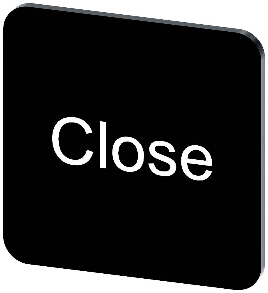 targhetta identificativa per lincollaggio su custodia, grandezza della targhetta 22x22 mm, targhetta nera, caratteri bianchi, con iscrizione: Close Targhetta identificativa per la siglatura dei dispositivi di comando e segnalazione SIRIUS ACT. Siemens offre, sotto il nome commerciale SIRIUS ACT, un portfolio esclusivo di dispositivi di comando e segnalazione con omologazioni di prodotto per il mercato mondiale in tre moderne serie di design in robusto metallo puro e plastica pregiata.Linnovativo concettodi innesto a scatto semplifica talmente il montaggio che per eseguirlo basta una sola mano e non servono attrezzi speciali. Per i fori di montaggio sono sufficienti semplici fori non scanalati, essendo già integrata una protezione antirotazione al 100 %.Grazie al grado di protezione elevato i robusti apparecchi sono adatti allimpiego industriale e in ambiente esterno. È persino possibile la pulizia con getto ad alta pressione. Né polvere, né oli, né liscivia possono comprometterne il funzionamento affidabile.Oltre che con il cablaggio standard, gli apparecchi possono essere collegati al controllore anche tramite PROFINET, AS-Interface oppure IO-Link. Potete così ridurre il vostro onere di cablaggio, minimizzare le fonti di errore e ottenere maggiore flessibilità.Il configuratore online grafico supporta in modo confortevole la scelta e lordinazione di singoli apparecchi, pulsantiere e iscrizioni. È disponibile una documentazione completa (ad es. manuale, dati 3D, schema di collegamento). Ampia gamma di accessori opzionali (ad es. targhette identificative, per protezione e accesso, operatori, accessori per pulsantiere). SIRIUS ACT - Performance in Action nel comando e nella segnalazione. Semplici da montare, altamente performanti, semplicemente perfetti.