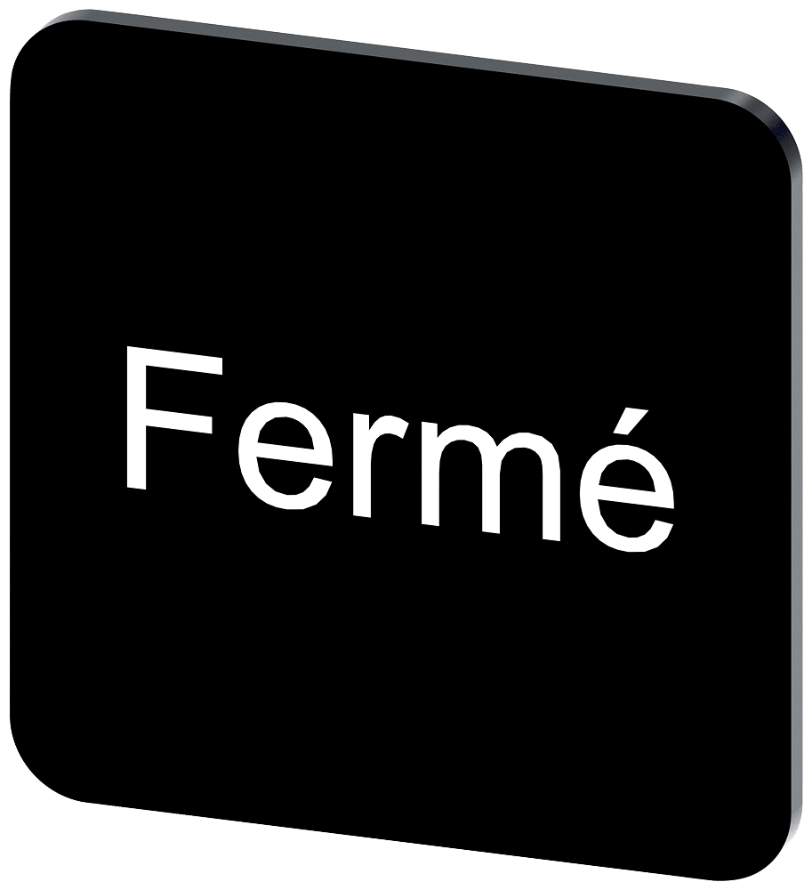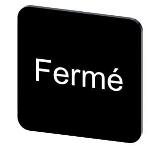 targhetta identificativa per lincollaggio su custodia, grandezza della targhetta 22x22 mm, targhetta nera, caratteri bianchi, con iscrizione: Ferme Targhetta identificativa per la siglatura dei dispositivi di comando e segnalazione SIRIUS ACT. Siemens offre, sotto il nome commerciale SIRIUS ACT, un portfolio esclusivo di dispositivi di comando e segnalazione con omologazioni di prodotto per il mercato mondiale in tre moderne serie di design in robusto metallo puro e plastica pregiata.Linnovativo concettodi innesto a scatto semplifica talmente il montaggio che per eseguirlo basta una sola mano e non servono attrezzi speciali. Per i fori di montaggio sono sufficienti semplici fori non scanalati, essendo già integrata una protezione antirotazione al 100 %.Grazie al grado di protezione elevato i robusti apparecchi sono adatti allimpiego industriale e in ambiente esterno. È persino possibile la pulizia con getto ad alta pressione. Né polvere, né oli, né liscivia possono comprometterne il funzionamento affidabile.Oltre che con il cablaggio standard, gli apparecchi possono essere collegati al controllore anche tramite PROFINET, AS-Interface oppure IO-Link. Potete così ridurre il vostro onere di cablaggio, minimizzare le fonti di errore e ottenere maggiore flessibilità.Il configuratore online grafico supporta in modo confortevole la scelta e lordinazione di singoli apparecchi, pulsantiere e iscrizioni. È disponibile una documentazione completa (ad es. manuale, dati 3D, schema di collegamento). Ampia gamma di accessori opzionali (ad es. targhette identificative, per protezione e accesso, operatori, accessori per pulsantiere). SIRIUS ACT - Performance in Action nel comando e nella segnalazione. Semplici da montare, altamente performanti, semplicemente perfetti.