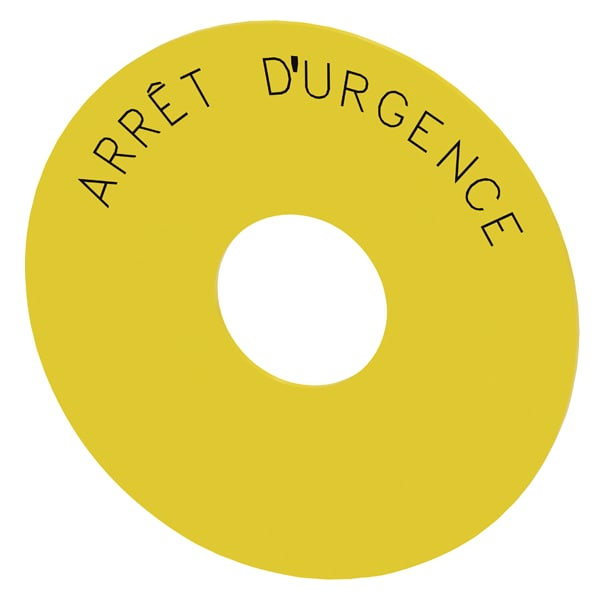 targhetta con dicitura rotonda, per pulsante a fungo di ARRESTO DI EMERGENZA, giallo, autoadesivo, diametro esterno 75 mm, diametro interno 23 mm, con iscrizione: ARRÊT DURGENCE Targhetta rotonda per ARRESTO DI EMERGENZA per la siglatura dei dispositivi di comando e segnalazione SIRIUS ACT. Siemens offre, sotto il nome commerciale SIRIUS ACT, un portfolio esclusivo di dispositivi di comando e segnalazione con omologazioni di prodotto per il mercato mondiale in tre moderne serie di design in robusto metallo puro e plastica pregiata.Linnovativo concetto di innesto a scatto semplifica talmente il montaggio che per eseguirlo basta una sola mano e non servono attrezzi speciali. Per i fori di montaggio sono sufficienti semplici fori non scanalati, essendo già integrata una protezione antirotazione al 100 %.Grazie al grado di protezione elevato i robusti apparecchi sono adatti allimpiego industriale e in ambiente esterno. È persino possibile la pulizia con getto ad alta pressione. Né polvere, né oli, né liscivia possono comprometterne il funzionamento affidabile.Oltre che con il cablaggio standard, gli apparecchi possono essere collegati al controllore anche tramite PROFINET, AS-Interface oppure IO-Link. Potete così ridurre il vostro onere di cablaggio, minimizzare le fonti di errore e ottenere maggiore flessibilità.Il configuratore online grafico supporta in modo confortevole la scelta e lordinazione di singoli apparecchi, pulsantiere e iscrizioni. È disponibile una documentazione completa (ad es. manuale, dati 3D, schema di collegamento). Ampia gamma di accessori opzionali (ad es. targhette identificative, per protezione e accesso, operatori, accessori per pulsantiere). SIRIUS ACT - Performance in Action nel comando e nella segnalazione. Semplici da montare, altamente performanti, semplicemente perfetti.