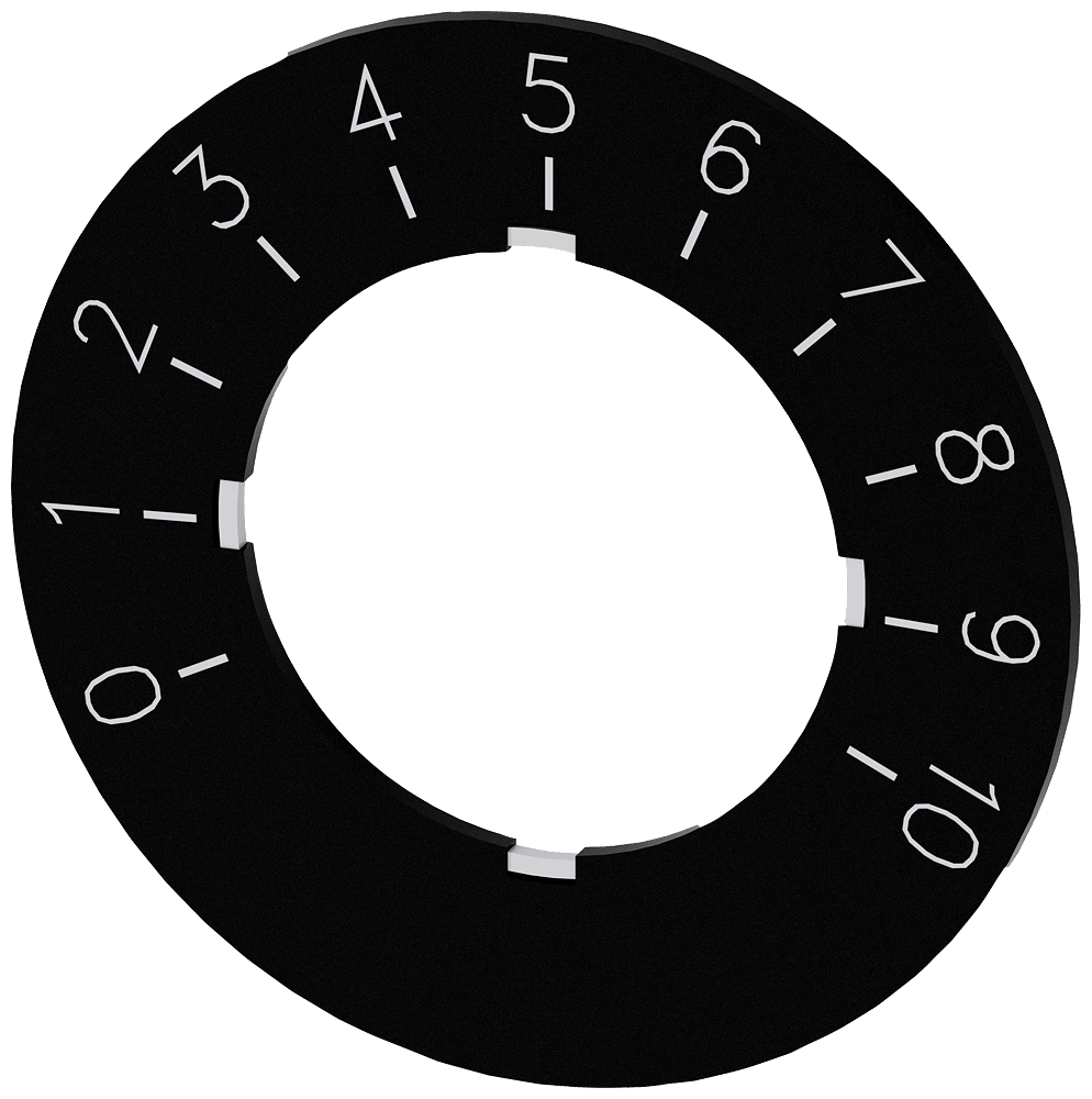 targhetta identificativa per potenziometro, targhetta nera, iscrizione bianca, con iscrizione: 0...10, diametro esterno 40 mm Targhetta identificativa per la siglatura dei dispositivi di comando e segnalazione SIRIUS ACT. Siemens offre, sotto il nome commerciale SIRIUS ACT, un portfolio esclusivo di dispositivi di comando e segnalazione con omologazioni di prodotto per il mercato mondiale in tre moderne serie di design in robusto metallo puro e plastica pregiata.Linnovativo concetto di innesto a scatto semplifica talmente il montaggio che per eseguirlo basta una sola mano e non servono attrezzi speciali. Per i fori di montaggio sono sufficienti semplici fori non scanalati, essendo già integrata una protezione antirotazione al 100 %.Grazie al grado di protezione elevato i robusti apparecchi sono adatti allimpiego industriale e in ambiente esterno. È persino possibile la pulizia con getto ad alta pressione. Né polvere, né oli, né liscivia possono comprometterne il funzionamento affidabile.Oltre che con il cablaggio standard, gli apparecchi possono essere collegati al controllore anche tramite PROFINET, AS-Interface oppure IO-Link. Potete così ridurre il vostro onere di cablaggio, minimizzare le fonti di errore e ottenere maggiore flessibilità.Il configuratore online grafico supporta in modo confortevole la scelta e lordinazione di singoli apparecchi, pulsantiere e iscrizioni. È disponibile una documentazione completa (ad es. manuale, dati 3D, schema di collegamento). Ampia gamma di accessori opzionali (ad es. targhette identificative, per protezione e accesso, operatori, accessori per pulsantiere). SIRIUS ACT - Performance in Action nel comando e nella segnalazione. Semplici da montare, altamente performanti, semplicemente perfetti.