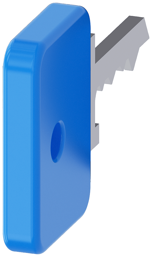 chiave per selettore a chiave O.M.R., numero serratura 73038, azzurro Chiave come accessori per dispositivi di comando e segnalazione SIRIUS ACT. Siemens offre, sotto il nome commerciale SIRIUS ACT, un portfolio esclusivo di dispositivi di comando e segnalazione con omologazioni di prodotto per il mercato mondiale in tre moderne serie di design in robusto metallo puro e plastica pregiata.Linnovativo concetto di innesto a scatto semplifica talmente il montaggio che per eseguirlo basta una sola mano e non servono attrezzi speciali. Per i fori di montaggio sono sufficienti semplici fori non scanalati, essendo già integrata una protezione antirotazione al 100 %.Grazie al grado di protezione elevato i robusti apparecchi sono adatti allimpiego industriale e inambiente esterno. È persino possibile la pulizia con getto ad alta pressione. Né polvere, né oli, né liscivia possono comprometterne il funzionamento affidabile.Oltre che con il cablaggio standard, gli apparecchi possono essere collegati al controllore anche tramite PROFINET, AS-Interface oppure IO-Link. Potete così ridurre il vostro onere di cablaggio, minimizzare le fonti di errore e ottenere maggiore flessibilità.Il configuratore online grafico supporta in modo confortevole la scelta e lordinazione disingoli apparecchi, pulsantiere e iscrizioni. È disponibile una documentazione completa (ad es. manuale, dati 3D, schema di collegamento). Ampia gamma di accessori opzionali (ad es. targhette identificative, per protezione e accesso, operatori, accessoriper pulsantiere). SIRIUS ACT - Performance in Action nel comandoe nella segnalazione. Semplici da montare, altamente performanti, semplicemente perfetti.