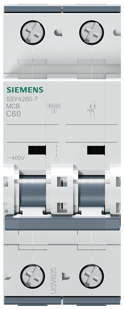 SIEMENS - SIE5SY42607 Interruttore magnetotermico 400 V 10 kA, a 2 poli, C, 60 A, P=70 mm