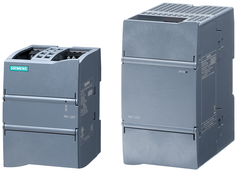 SIMATIC S7-1200 Power Module PM 1207 24V/5A alimentatore stabilizzato ingresso: AC/DC 120 - 240 V uscita: DC 24 V/5 A con interfaccia di diagnostica UDI Lalimentatore di corrente di carico monofase SIMATIC PM1207 (PM = Power Module) nel design SIMATIC S7-1200 G2, è largo solo 70 mm e quindi occupa poco spazio in combinazione con il micro PLC. Lalimentatore da rete a 5 A alimenta CPU con ingresso a 24 V, unità di ingressi/uscite e i relativi carichi collegati. Lingresso wide-range garantisce il collegamento senza problemi a reti AC/DC monofase da 120 a 240 V in ambito industriale e residenziale. Il montaggio avviene su guida DIN o mediante viti nel caso di montaggio a parete. Numerose certificazioni quali UL e GL ne consentono un impiego universale. Indipendentemente dal settore o dallesigenza, Siemens offre alimentatori affidabili ed efficienti per ogni impianto.