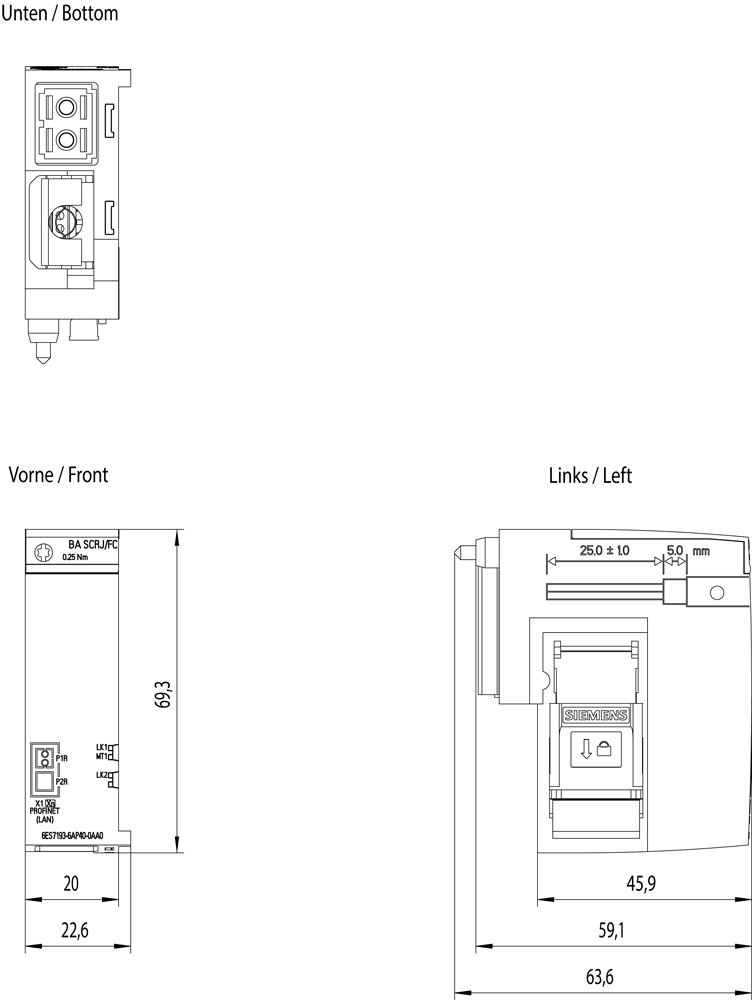 SIEMENS - SIE6ES71936AP400AA0 ET 200SP, BUSADAPTER BA 2XSCRJ/FC