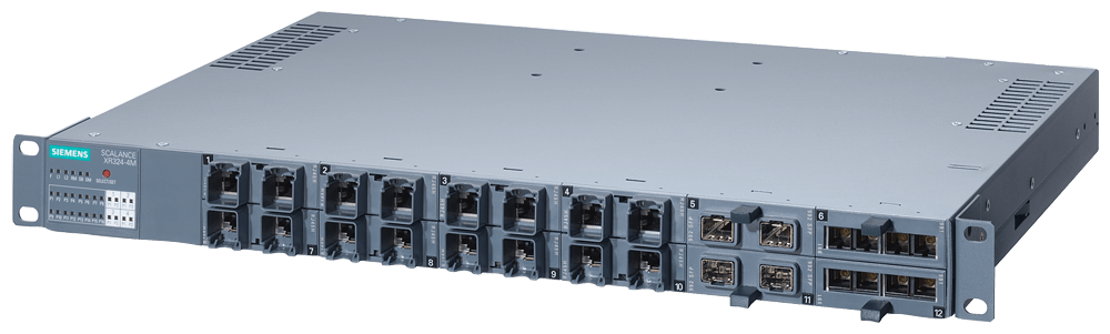 SCALANCE XR324-4M EEC; switch IE managed, rack da 19; 16x 10/100/1000 Mbit/s per porte RJ45 elettriche; 4x 100/1000 Mbit/s per media module a 2 porte, elettriche oppure ottiche; diagnostica LED; contatto di segnalazione ; pulsante Select/Set, PROFINET IODevice, Network management, integrato manager di ridondanza; alimentazione di tensione 1 x AC 230 V; porte frontali SCALANCE XR324-4M EEC managed, rack switch di Layer 2, 16x RJ45 da 10/100/1000 Mbit/s, 4x 100/1000 Mbit/s per Media-Modules, 1x AC 230 V, porte sul lato anteriore, per condizioni ambientali estese. Installazione in rack da 19 pollici per la configurazione di reti strutturate. Switch per quadro elettrico SCALANCE XR324-4M flessibile e compatto: la prossima generazione di reti industriali combina OT e IT per una produzione più flessibile e sicura. I nostri switch Ethernet SCALANCE X-300 come dispositivi compatti o come switch a 19 per il quadro elettrico assicurano un elevato livello di funzionalità e flessibilità con Industrial Edge e, in futuro, anche con Time-Sensitive Networking (TSN). Scoprite i molteplici vantaggi della nostra serie di apparecchiature SCALANCE XR-300: dagli switch per il quadro elettrico da utilizzare negli ambienti industriali agli switch Ethernet in design compatto, fino agli switch per le condizioni industriali più gravose: con SCALANCE XR324-4M si trova sempre il giusto switch per numerose applicazioni.