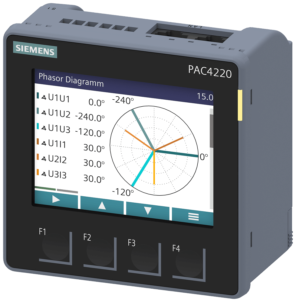 SENTRON PAC4220, Power Monitoring Device con display TFT grafico PMD-III sec. IEC 61557-12 energia attiva classe 0,2 (classe 0,2S secondo IEC 62053-22) 96x96 mm, trifase, 45 ... 65 Hz Ue nom: 690/400 V, Ie nom: x/1A oppure x/5A, alimentatore da rete wide-range AC/DC 95 ... 250 V +-10% (AC), 110 ... 270 V +-10% (DC) collegamento a vite apparecchio da incasso nel pannello di comando per la misura di grandezze elettriche energia apparente / attiva / reattiva / cos phi / THDu / THDi / componente armonica pari e dispari per ogni fase fino alla 64ª Dispositivo di misura per la misurazione della qualità della rete di alimentazione SENTRON 7KM PAC4220 per lacquisizione precisa di tutte le importanti grandezze di misura elettriche nelle reti di distribuzione dellenergia per la valutazione delle condizioni dellimpianto e della qualità della rete di alimentazione nellindustria di processo e manifatturiera, ma anche per infrastrutture critiche come ospedali e centri di calcolo. I dispositivi di misura per lanalisi rete 7KM PAC4200 rilevano in modo preciso, riproducibile e affidabile le principali grandezze elettriche di alimentazione, partenze elettriche o singoli utilizzatori. Essi forniscono non solo informazioni complete sulla vostra installazione elettrica e sulla distribuzione dellenergia ma anche valori di misura importanti per la valutazione dello stato dellimpianto e della qualità della rete. Per lulteriore elaborazione dei dati di misura i dispositivi sono facilmente integrabili, grazie alle loro molteplicipossibilità di comunicazione, in sistemi sovraordinati di automazione e di gestione dellenergia tramite Modbus TCP, PROFINET, PROFIBUS e Modbus RTU. Con moduli aggiuntivi, è possibile realizzare ulteriori ingressi e uscite digitali, ingressi analogici, misura diretta del conduttore di neutro, misura di corrente differenziale o funzionalità di gateway RS485. I dispositivi di misura 7KM PAC sono disponibili in diverse varianti, adatte a soddisfare le vostre esigenze. SENTRON PAC - Gli specialisti nellacquisizione di valori di misura.