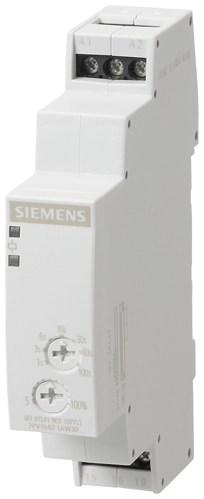 SIEMENS - SIE7PV15401AW30 Relè a tempo, elettronico, ritardato alla diseccitazione, 1CO, 7 campi di temporizzazione 0,05 ... 100 s