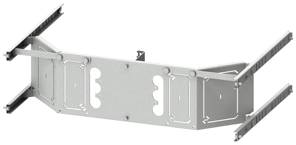 SIVACON S4 piastra di montaggio 3VL2 e 3VL3 a 3 poli, installazione fissa mediante porta di scomparto A: 150mm, La: 600mm Il quadro di distribuzione dell'energia SIVACON S4 è un sistema economico di involucri e componenti SENTRON. Il quadro di distribuzione dell'energia SIVACON S4 è un sistema per la realizzazione di una combinazione di apparecchi di manovra con certificato di omologazione di tipo. Esso consente di realizzare una distribuzione dell'energia sicura, omogenea ed economica fino a 4 000 A. Grazie alla struttura modulare del sistema è possibile adattarlo in modo flessibile a quasi tutte le esigenze. Diverse tecniche d'installazione, compatibili con i componenti mediante molteplici accessori, si adattano perfettamente alla varietà di requisiti della distribuzione dell'energia. Il software di configurazione SIMARIS configuration supporta l'utente dalla pianificazione fino alla documentazione dei quadri di distribuzione dell'energia SIVACON e dei quadri di distribuzione per l'installazione ALPHA UNIVERSAL. I quadri di distribuzione dell'energia SIVACON di Siemens si contraddistinguono soprattutto per le seguenti caratteristiche: 1. Il software di configurazione SIMARIS configuration aumenta la sicurezza della pianificazione e fa risparmiare temponella preparazione dell'offerta come pure della documentazione dell'impianto. 2. Durante l'esercizio un sistema di ventilazione efficiente, appositamente studiato per i componenti, impedisce surriscaldamenti e concentrazioni di calore, riduce il deratinge assicura così una disponibilità costante dell'impianto. 3. La forma della segregazione interna fino a 4b può essere realizzata in modo ottimale mediante componenti standard. 4. La struttura del quadro di distribuzione dell'energia SIVACON S4 semplificail collegamento e l'installazione degli apparecchi. 5. Grazie a portapparecchi regolabili in profondità si hanno moltissime possibilità di installazione con una ridotta varietà di componenti, vedi ad. es. la scelta del meccanismo di comando e il tipo di montaggio degli apparecchi di manovra. 6. Grazie al concetto di produzione flessibile dei quadri di distribuzione SIVACON S4 certificato secondo ISO 9001 si possono realizzare soluzioni premontate in diverse varianti costruttive (secondo necessità con o senza elementi strutturali in rame) fornibili in tempo assai breve.