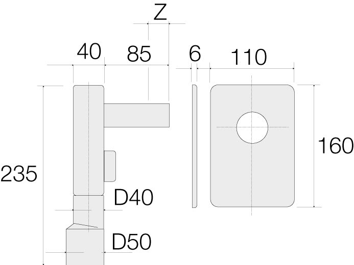 SIFONE LAVATRICE HDPE INCASSO ø40x50 E PIASTRA POLIPROPILENE BIANCO