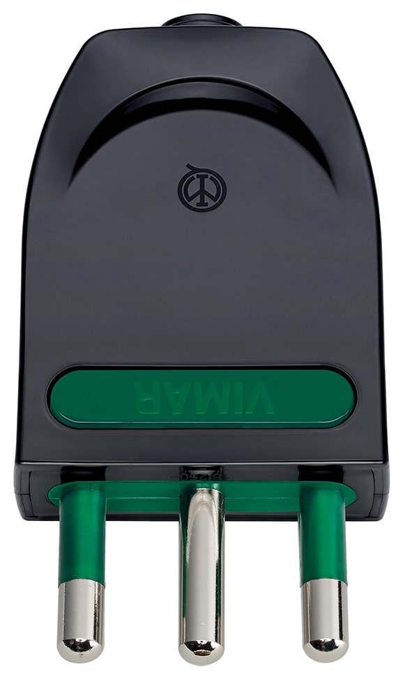 Spina SICURY 2P+T 16 A 250 V~, spinotti orientabili in linea o a squadra, standard italiano tipo S17-SPB17, uscita cavo assiale, nero