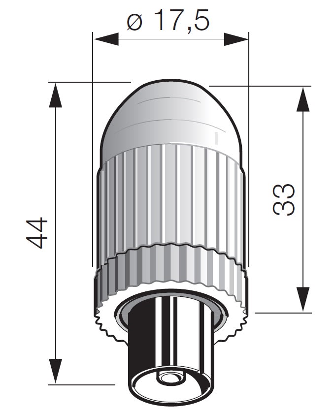 Connettore coassiale femmina IEC 60169-2, uscita cavo assiale - Z 75 Ω, bianco