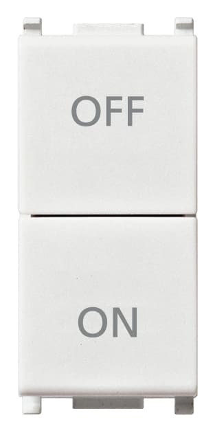 Due pulsanti indipendenti 1P NO + 1P NC 10 A, simboli ON e OFF.