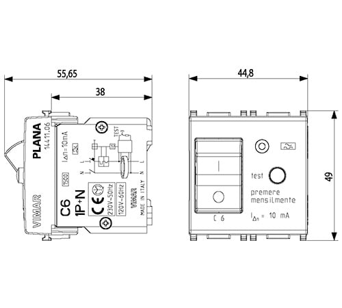 VIMAR SPA - VIW14411.06.SL Interruttore MTDiff. 1P+N C6 10mA Silver