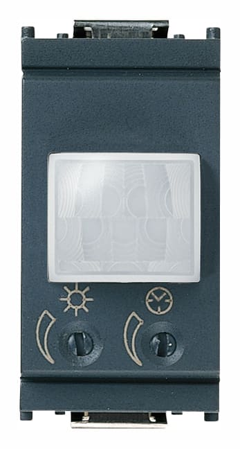 Interruttore con sensore di presenza ad infrarossi per accensione luci, soglia del sensore crepuscolare e ciclo di temporizzazione regolabili, uscita a relè NO 6 A 230 V~, alimentazione 230 V~ 50-60 Hz, grigio