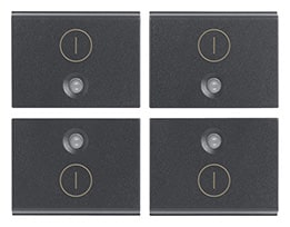 Quattro mezzi tasti intercambiabili 1 modulo,simbolo I O, grigio.