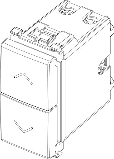 Commutatore 2P 10 AX 250 V~ (6 morsetti), a due tasti, con frecce direzionali e posizione OFF centrale, grigio