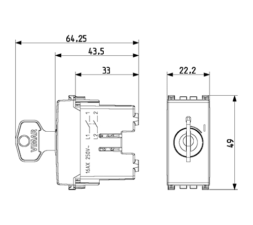 VIMAR SPA - VIW19083.CU INTERR. 2P 16(3)A +CHIAVE UNIF. GRIGIO