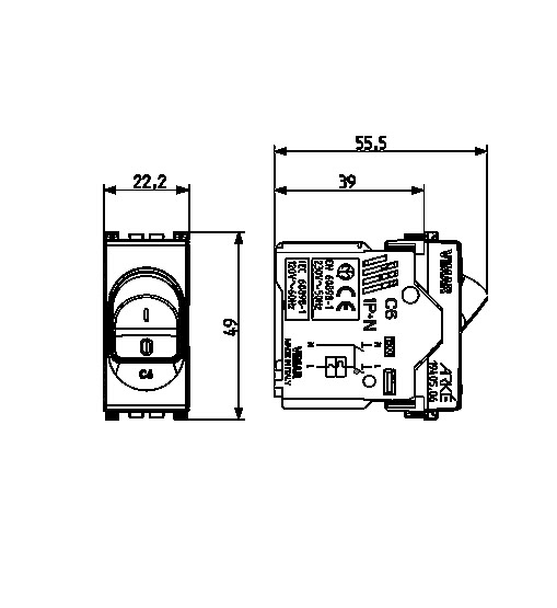 VIMAR SPA - VIW19405.06 INTERRUTTORE MT 1P+N C6 120-230V GRIGIO