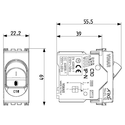 VIMAR SPA - VIW19405.10.B INTERRUTTORE MT 1P+N C10 120-230V BIANCO
