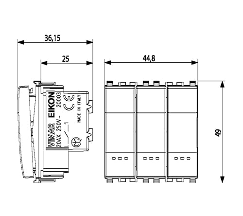 VIMAR SPA - VIW20003.B TRE INTERRUTTORI 1P 20AX BIANCO