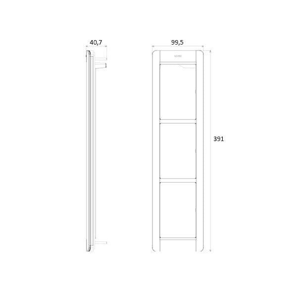 Supporto e placca 3 moduli Pixel, grigio anodizzato. Dimensioni 99,5x391 mm