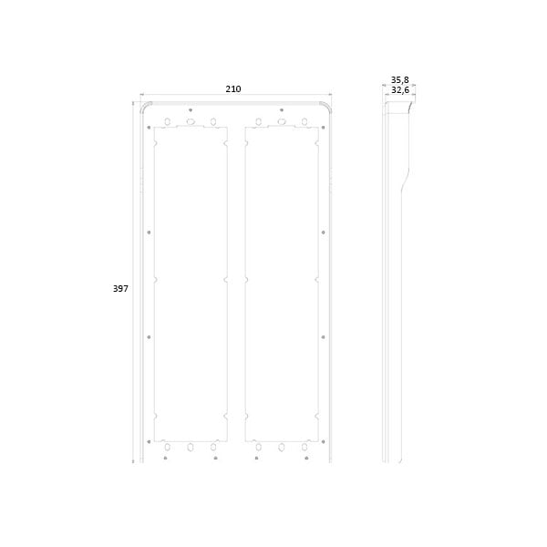Cornice parapioggia 6 moduli (2x3) Pixel, grigio. Dimensioni 210x397x35,8 mm
