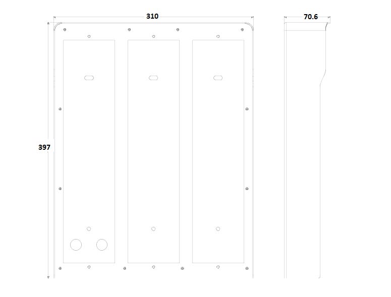 Scatola parete con cornice parapioggia incorporata 9 moduli (3x3) Pixel, grigio. Dimensioni 310x397x70,6 mm