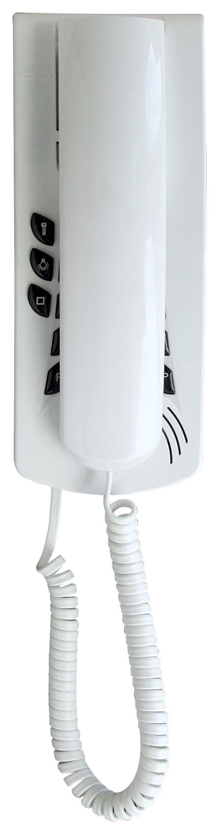 Citofono da parete intercomunicante per portiere elettrico e videocitofonia, con tastiera per le chiamate intercomunicanti, 1 pulsante per l’apertura della serratura e pulsanti per funzioni ausiliarie, permette la realizzazione di reti di citofoni intercomunicanti con un numero fisso di fili per Sound System, bianco