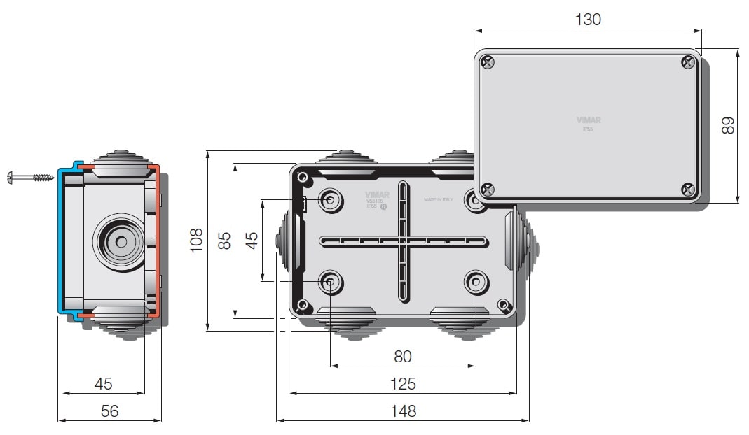 VIMAR SPA - VIWV55205 SCATOLA DERIVAZIONE IP56 120X80X50MM