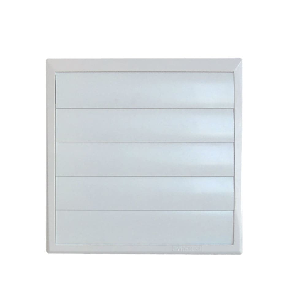 GRIGLIE A GRAVITÀ - Da installare a parete. - Impedisce il rientro di aria e di oggetti. - Fabbricata interamente in resina termoplastica antiurto resistente agli UV. - Le alette sono sagomate in modo da evitare che restino bloccate.