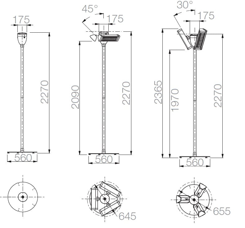 PALO PER THERMOLOGIKA SOLEIL PLUS - •Utile supporto al quale possono essere applicate da 1 a 3 Thermologika Soleil Plus.•Potenza massima: 4500 W (con 3 lampade installate).•Altezza del palo: 2,27 m •Le lampade possono essere installate in posizione verticale e orizzontale, con possibilità di orientamento. •Il cavo di alimentazione può correre all’interno del palo,dal basso verso l’alto, oppure può essere posizionato sulla sommità.•Pedana piatta dotata di piedini di gomma.•Protezione IPX5•Colore: alluminio satinato.