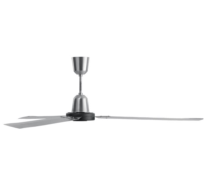 Ventilatore da soffitto industriale reversibile, serie Nordik HD. Gli apparecchi della serie Nordik HD sono ventilatori da soffitto reversibili specificamente progettati per l’utilizzo continuativo, anche alla massima velocità, in ambienti caratterizzatida concentrazione di sostanze aggressive, abrasive ed in presenza di elevati tassi di umidità. La geometria delle 3 pale, sagomate per garantire elevati valori di rigidità torsionale, permettono elevati livelli prestazionali (fino a 22.000 m³/h per i modelli 200) abbinati ad emissioni sonore contenute. I modelli BASE sono caratterizzati da pale in lamiera d’acciaio elettrozincata, trattate con fondo epossidico e successiva verniciatura epossidica in colore grigio e finitura martellata; coppe in lamiera d’acciaio elettrozincata, trattate con fondo epossidico e successiva verniciatura epossidica in colore nero e finitura martellata. I modelli INOX si contraddistinguono dai modelli base per le pale in lamiera d’acciaio inossidabile AISI 304 con finitura scotch brite; le aste e le coppe in lamiera d’acciaio inossidabile AISI 304 con finitura scotch brite; i coperchi motore verniciati con polvere epossidica in colore nero e finitura goffrata. Motore a rotore esterno ad elevato rendimento anche a bassa velocità. Funzione reversibilità: è possibile invertire la direzione del flusso d’aria dal pavimento al soffitto, si viene così a creare un flusso non più diretto, ma avvolgente e più ampio. Inoltre si migliora la destratificazione del calore in inverno, riducendo la differenza di temperatura tra il pavimento (più freddo) e il soffitto (più caldo). Dispositivo di sostegno costituito da apposita piastra, caratterizzata da 4 fori per un saldo e durevole fissaggio, compatibile con il montaggio del prodotto anche incorrispondenza di soffitti inclinati. Forniti con asta di sostegno in acciaio di 290 mm. Isolamento: Cl. I .