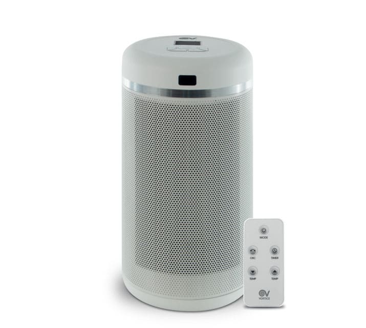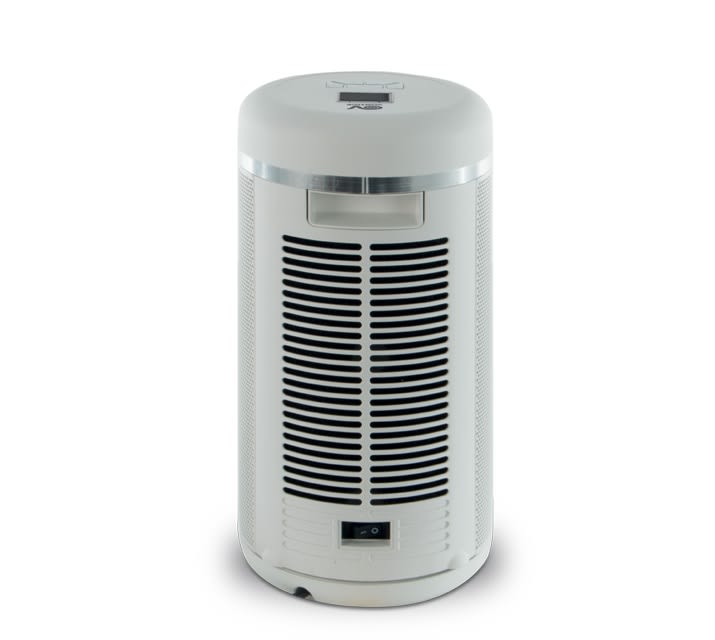 Termoventilatore da tavolo/pavimento dotato di telecomando a IR e resistenza elettrica di tipo ceramico, utile in caso di specifiche esigenze di riscaldamento ausiliario di piccoli o medi locali residenziali. • Involucro, cover superiore e inferiore stampate in polipropilene autoestinguente di colore bianco. • Fascia decorativa in PVC color grigio argento. • Tasto per la connessione alla rete (il prodotto è in stand-by, pronto per l’accensione) posto nella porzione inferiore sul retro del prodotto. • Pannello comandi con display LCD e pulsantiera, posti sulla porzione superiore, per: • l’accensione / spegnimento del prodotto, • l’attivazione dell’oscillazione automatica sul piano orizzontale, • la selezione delle modalità di funzionamento: • LOW: il termoventilatore funziona costantemente alla minima potenza (1.000 W), • HIGH: il termoventilatore funziona costantemente alla massima potenza (2.000 W), • AUTO: consente il settaggio della temperatura ambiente desiderata (da 5° C a 32° C): il prodotto funzionerà automaticamente per raggiungere nel minor tempo possibile la temperatura precedentemente impostata, per poi mantenerla costante alternando cicli di minima e massima potenza di funzionamento. • STANDBY: il prodotto arresta il suo funzionamento ma continua ad essere alimentato. • il settaggio del timer per lo spegnimento ritardato, impostabile ad intervalli di ½ ora, fino ad un massimo di 8 ore. • Telecomando IR per il controllo a distanza del prodotto, alimentato da una batteria al litio del tipo CR2032 3V. Le funzioni del telecomando sono le medesime di quelle riportate a bordo del prodotto. • Sensore di ricezione del segnale del telecomando IR, posto frontalmente, immediatamente sopra la fascia decorativa. • Resistenza elettrica di tipo ceramico (PTC). • Termostato per l’impostazione ed il mantenimento della temperatura ambiente desiderata. • Protezione termica per evitare danni e rischi dovuti al surriscaldamento; il prodotto è dotato di un dispositivo di sicurezza che interrompe l’alimentazione incaso di surriscaldamento. • Dispositivo di protezione in caso di ribaltamento del prodotto: se il termoventilatore viene accidentalmente rovesciato, un interruttore di sicurezza posto al suo interno ne interrompe immediatamente il funzionamento. Una volta riposizionato correttamente, il termoventilatore si riattiverà automaticamente in modalità STANDBY. • Filtro antipolvere in poliuretano, posto sul retro e protetto dalla griglia removibile, utile a proteggere la componentistica interna dall’accumulo di polvere e macroparticelle presenti nell’aria. • Cavo di alimentazione, di lunghezza pari a 1,5 m, completo di spina shuko.