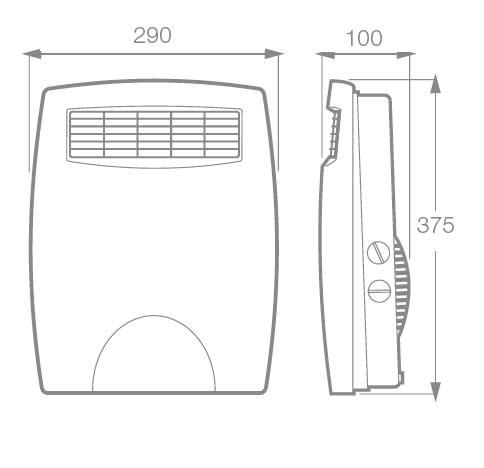 Termoventilatore trasferibile e da installazione Caldomi, adatto quando è necessario integrare il riscaldamento esistente oppure non è ancora in funzione o è programmato in altro orario. Due potenze 1000/2000W. Interruttore rotativo, posto sul lato sinistro, consente l'accensione del prodotto nella modalità di funzionamento prescelta. Termostato ambiente. Permette di mantenere la temperatura desiderata senza sprechi di energia. Funzione antigelo. Garantisce l'accensione automatica del prodotto quando la temperatura scende al di sotto dei 5°C. Resistenza ad aghi: equipaggiata di limitatore termico a ripristino manuale. Cavo di alimentazione di lunghezza pari a 2 metri con spina shuko. Piedino di appoggio a scomparsa, posto nella parte posteriore del prodotto. Costruito in conformità alle seguenti norme di sicurezza: EN 60335-1; EN 60335-2-30; norme di compatibilità elettromagnetica: EN 55014-1; EN 55014-2;EN 61000-3-2; EN 61000-3-3; norme riguardanti i limiti di esposizione umana ai campi elettromagnetici: EN 50366.