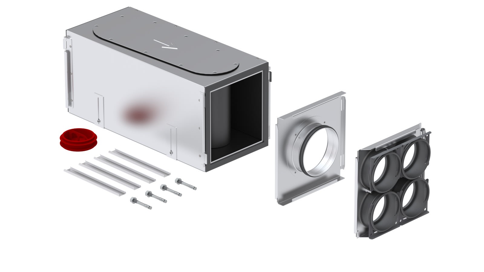 Silenziatore rettangolare dal design compatto, con uno speciale isolamento acustico, elevato abbattimento e ridotte perdite di carico. Separa e distribuisce i flussi d'aria dalla tubazione di centrale ai canali di distribuzione ComfoTube.
